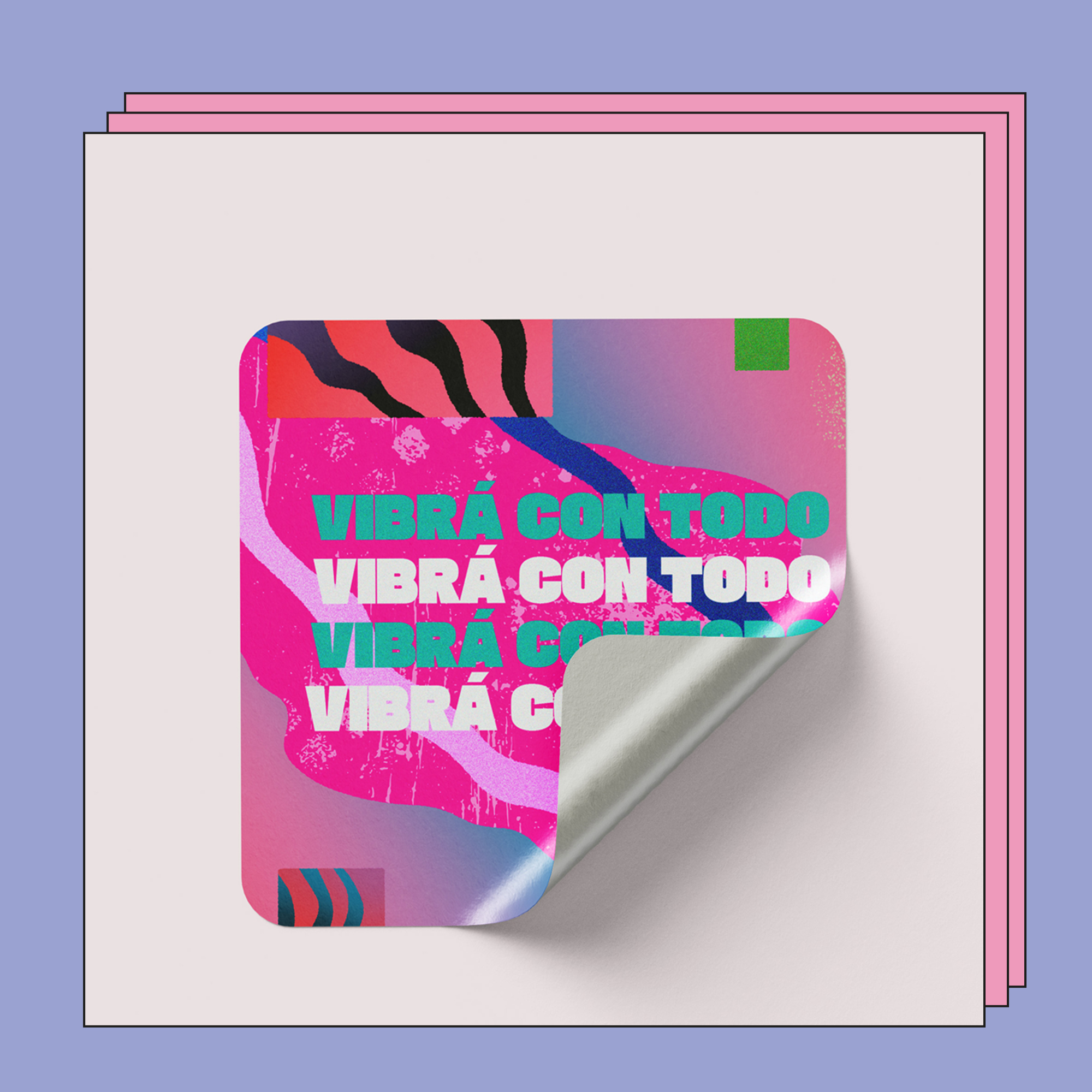La música no se escucha, se siente. Este sticker captura la energía incontenible de los festivales. Con la frase “Vibra con todo” repetida como una mantra visual y una explosión de color fucsia, es el recordatorio de vivir la música al máximo. Pégalo donde quieras y subile el volumen a tu rutina.